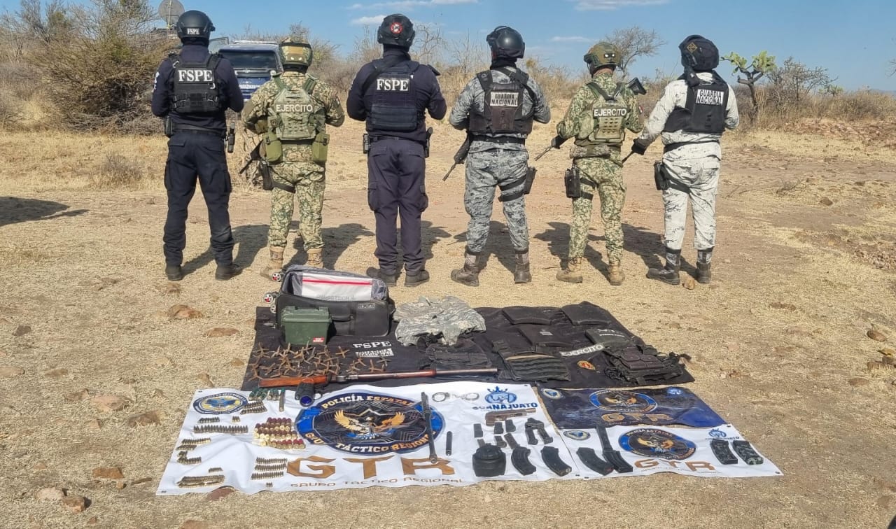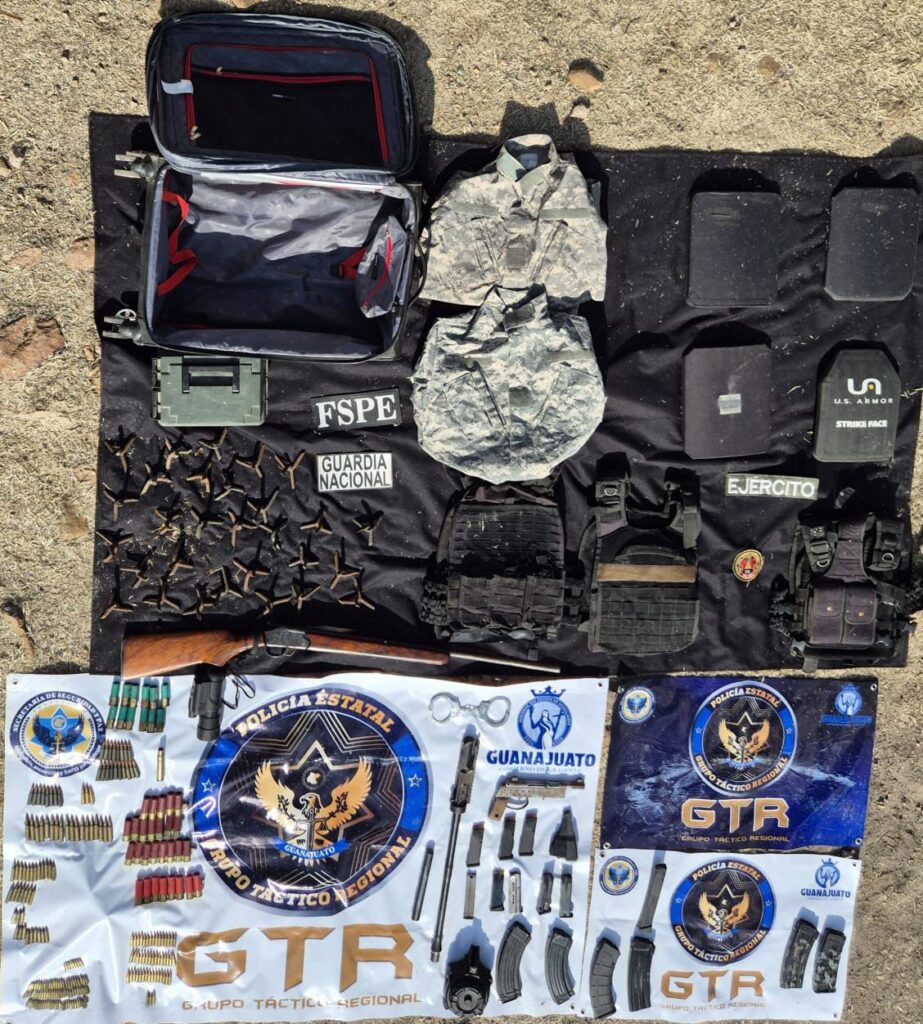 SSyP Juventino Rosas, Gto., a 11 de marzo de 2026.– La Secretaría de Seguridad y Paz, a través del Grupo Táctico Regional de las Fuerzas de Seguridad Pública del Estado (FSPE) y en coordinación con el Ejército Mexicano y la Guardia Nacional, aseguró armamento, municiones y equipo táctico durante un operativo.