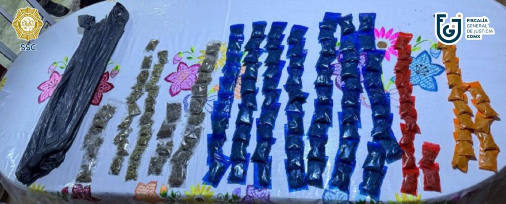 El primer cateo ocurrió en una unidad habitacional de la calle Puente, colonia Ex Hacienda San Juan de Dios, alcaldía Tlalpan. En el lugar fue detenido un hombre de 28 años y se aseguraron 136 dosis de aparente droga, un arma corta con cargador, seis cartuchos útiles y un teléfono celular.