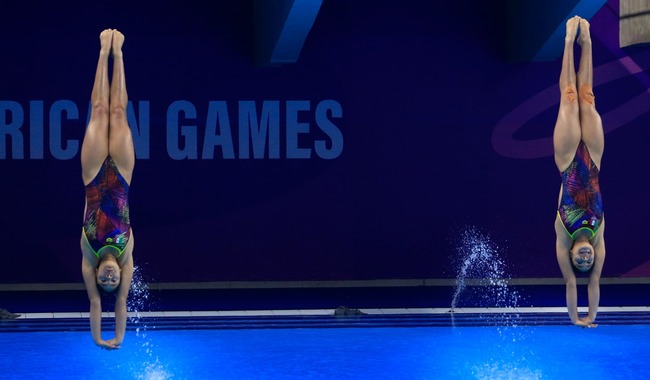 En deportes acuático, México tuvo un dorado debut en clavados con las gemelas jaliscienses Lía y Mía Cueva, quienes conquistaron la primera medalla dorada para el país en esta disciplina con el primer lugar en la final de sincronizado trampolín 3 metros con un total de 289.32 puntos.