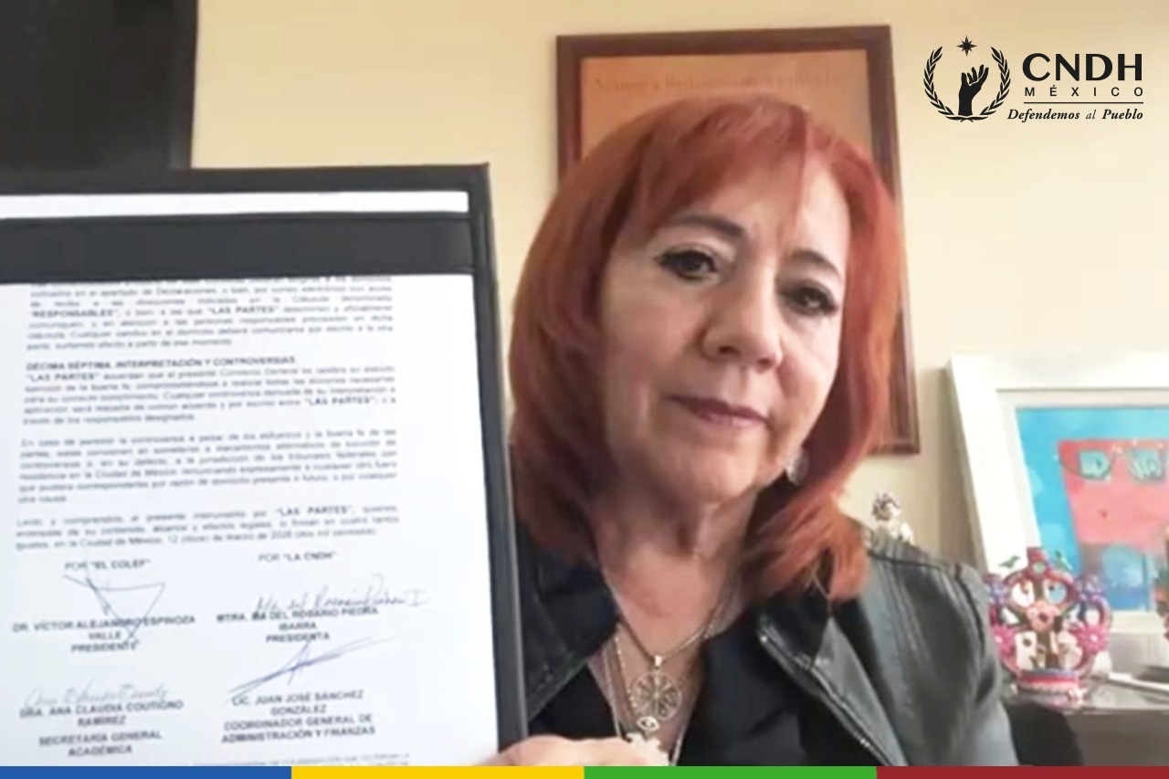 CNDH Ciudad de México.- La Comisión Nacional de los Derechos Humanos (CNDH) y El Colegio de la Frontera Norte (COLEF) firmaron un convenio de colaboración para desarrollar actividades en favor de la población migrante en los ámbitos cultural, social y académico, así como acciones de investigación, capacitación, intercambio de información, elaboración de estudios, difusión del conocimiento y otras iniciativas orientadas a fortalecer la defensa de los derechos humanos de las personas en contexto de movilidad.