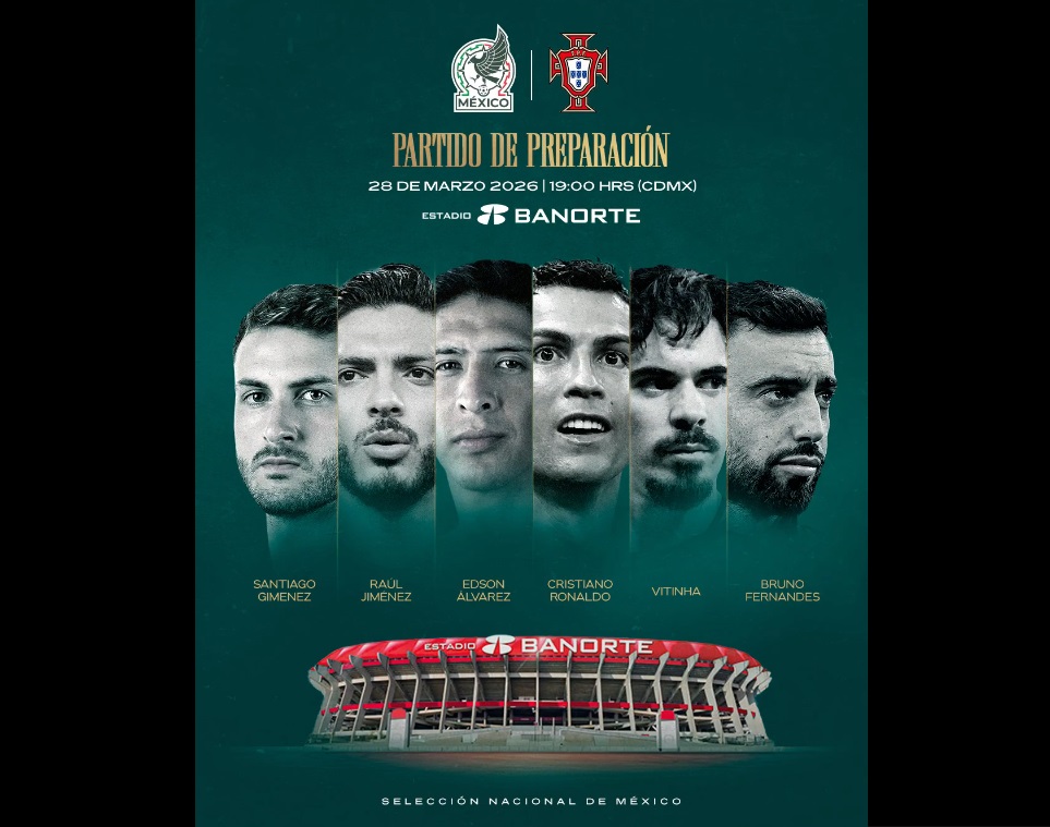 Selección Nacional Ciudad de México.- México recibirá a Cristiano Ronaldo y Portugal en el estadio Azteca el 28 de marzo de 2026, en la antesala del Mundial.