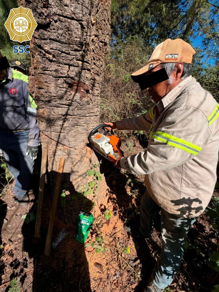 Mientras los oficiales realizaban sus labores de seguridad y vigilancia en el Paraje El Bolillo, Bienes Comunales, del Pueblo San Pablo Oztotepec, escucharon sonidos similares a los que emite una motosierra, por lo que se dirigieron al lugar donde provenía ese ruido.