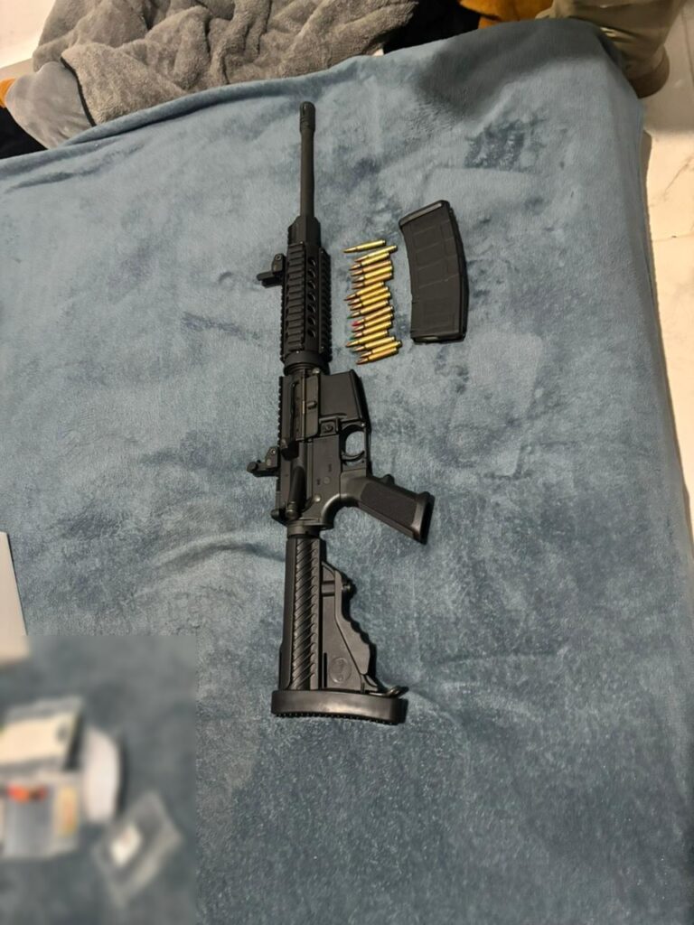 Durante la intervención se aseguró un arma de fuego larga tipo AR-15, un cargador y 17 cartuchos útiles calibre .223.