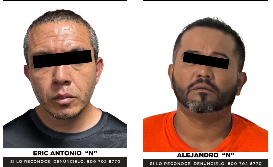 Con la información obtenida, se implementó un dispositivo de seguridad coordinado con las fiscalías estatales, mediante el cual fue detenido Eric Antonio “N”, quien cuenta con una orden de aprehensión vigente. En la misma acción fue detenido Alejandro “N”, quien lo auxilió a ocultarse y cuenta con una orden de aprehensión por el delito de abuso sexual en agravio de una menor, correspondiente a hechos ocurridos en 2022, en Cuautitlán, Estado de México.