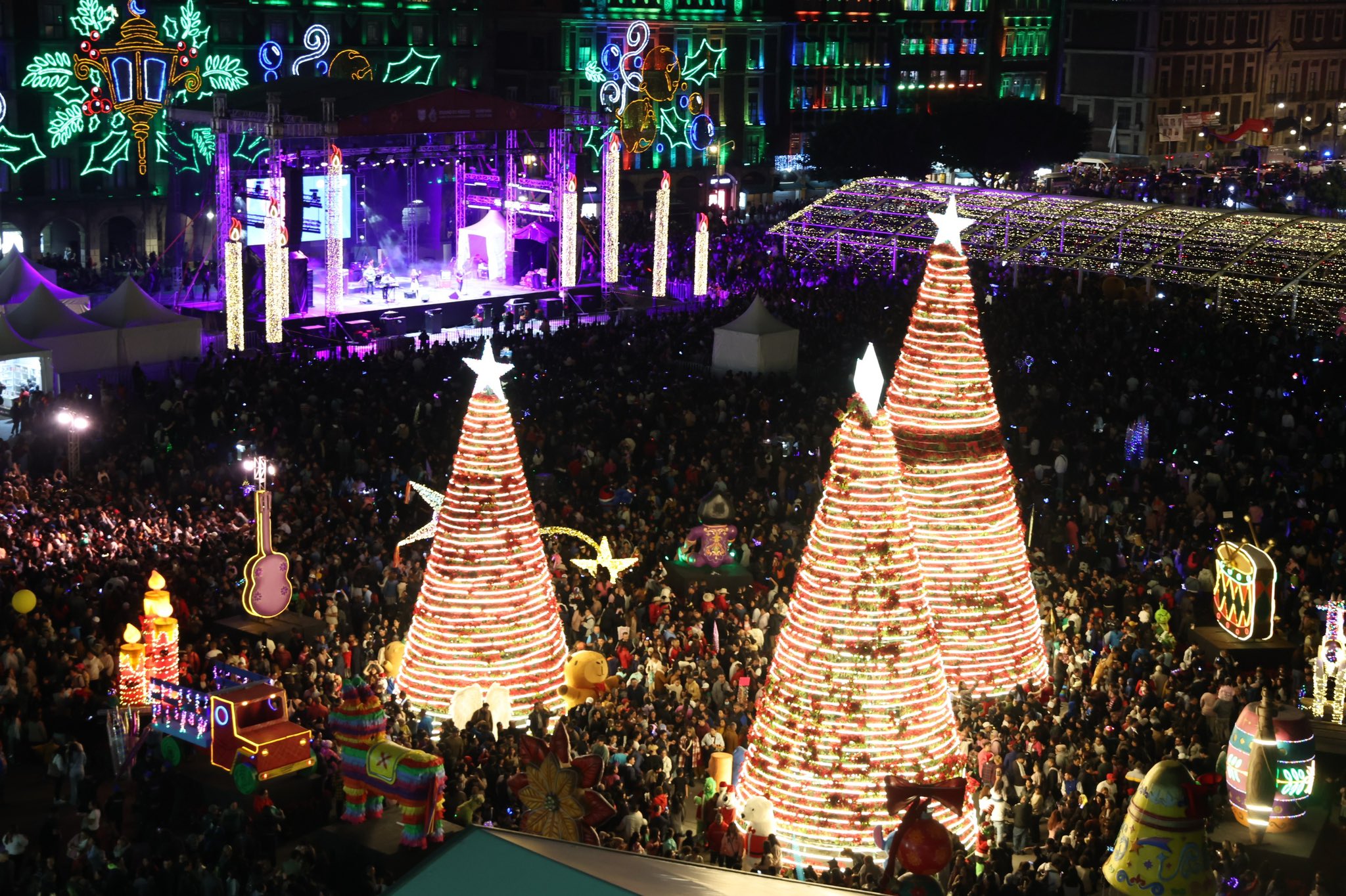 Disfrutan de Luces del Invierno en el Zócalo de CDMX