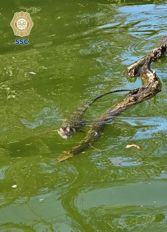 SSC Ciudad de México.- En atención a una denuncia por el avistamiento de un cocodrilo en el lago del parque Tezozomoc, ubicado en la alcaldía Azcapotzalco, efectivos de la Brigada de Vigilancia Animal (BVA), acudieron para su debido resguardo y traslado a sus instalaciones.