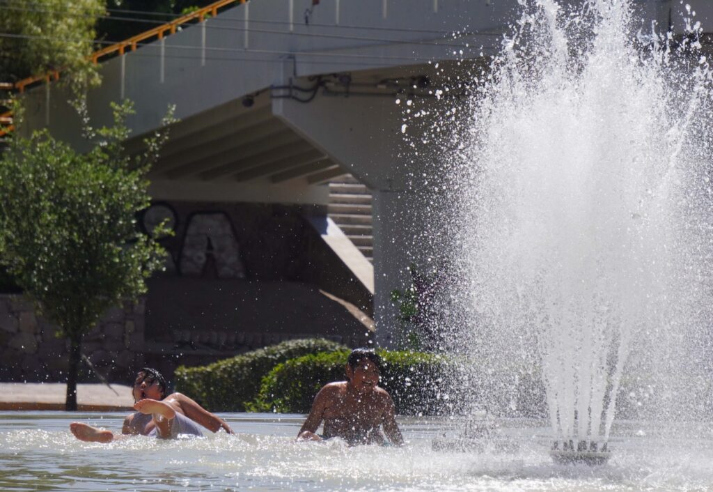 Para muchos niños, las fuentes del parque son el mejor lugar para pasarle en viernes, saliendo de la escuela, ya que han sido transformadas en albercas donde pueden jugar y refrescarse.
