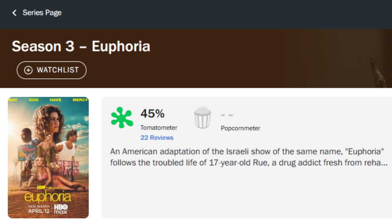 Estrenará Euphoria 3 con calificación reprobatoria en Rotten Tomatoes