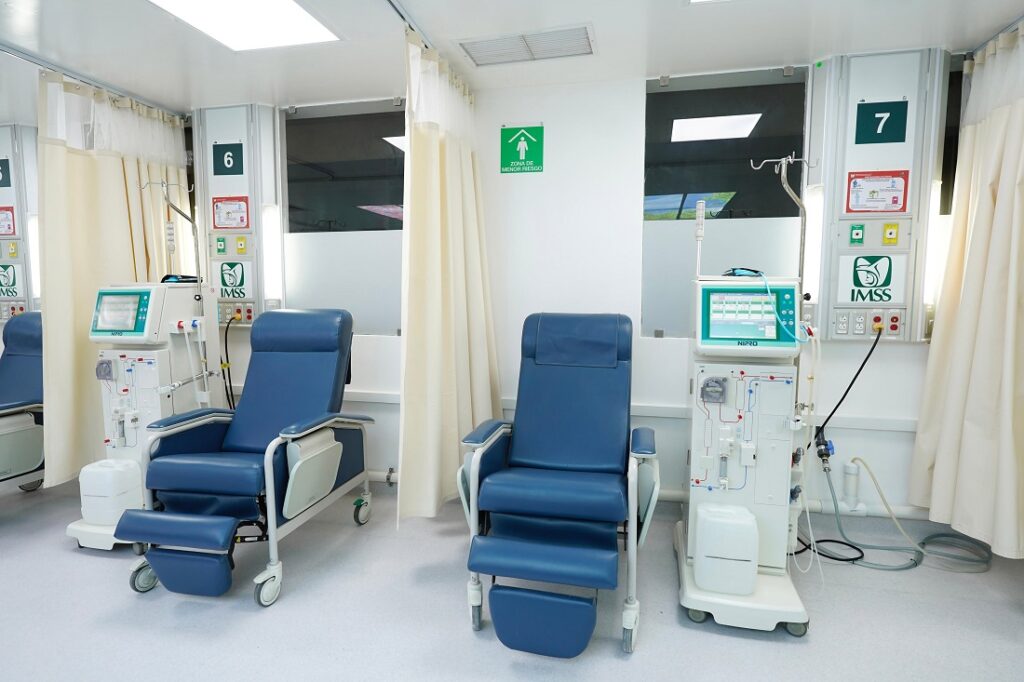 Zoé Robledo señaló que en el Hospital de Especialidades esta área fue remodelada por completo a favor de pacientes que requieren terapia de sustitución renal y que están hospitalizados en el tercer nivel de atención de esta UMAE, “son muy buenos equipos, las áreas se adecuaron y se ganó espacios para los residentes y el trabajo de todo el personal”.