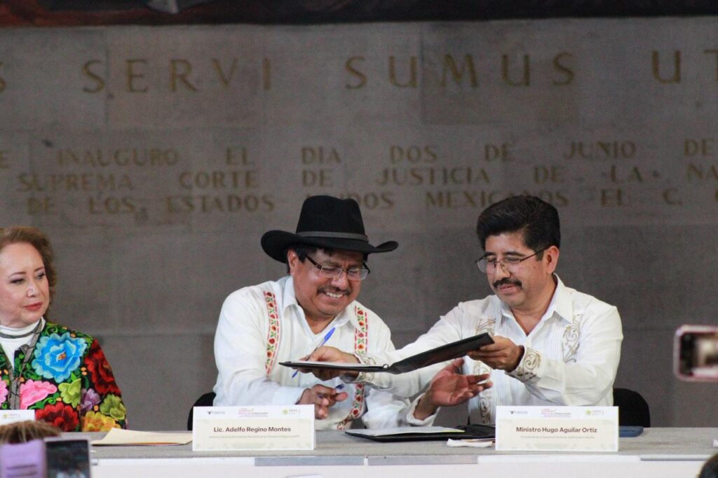 El acuerdo, suscrito por el ministro presidente Hugo Aguilar Ortiz y Adelfo Regino Montes, director general del INPI, tiene como objetivo fortalecer el acceso efectivo a la justicia de los pueblos originarios y afromexicanos desde un enfoque intercultural, lingüístico, territorial y de género, con pleno respeto a sus formas de gobierno, organización, sistemas normativos y jurisdicciones indígenas.
