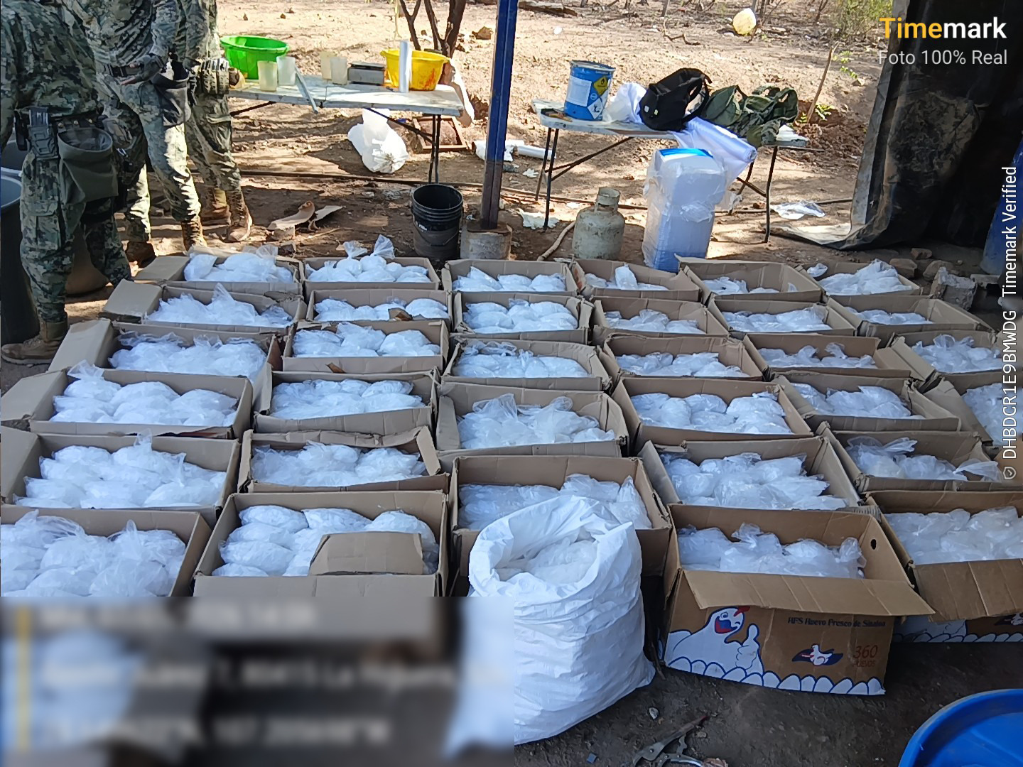 En una primera acción, personal naval localizó y neutralizó un laboratorio clandestino dedicado a la producción de metanfetamina en inmediaciones del poblado de Los Cedritos, Cosalá, Sinaloa.