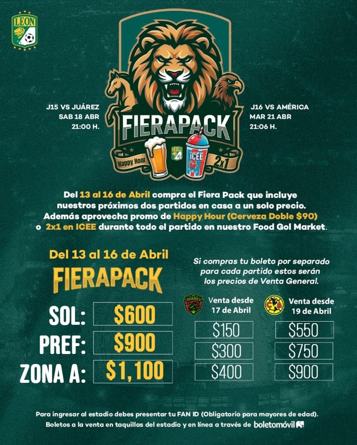 Lanza Club León Fierapack desde 600 pesos para ver los partidos contra Juárez y América