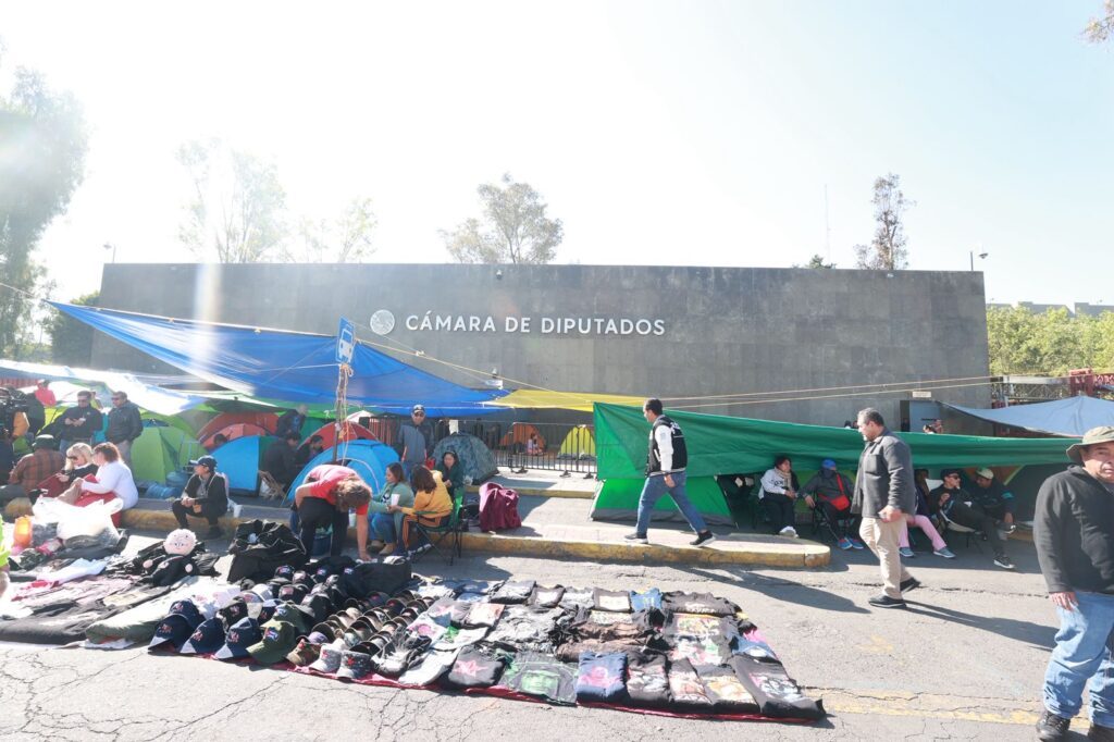 Afuera del recinto legislativo, decenas de profesores inconformes con el Gobierno federal bajaron de so camiones con casas de campañas y productos que venderán durante su estancia en esa zona.