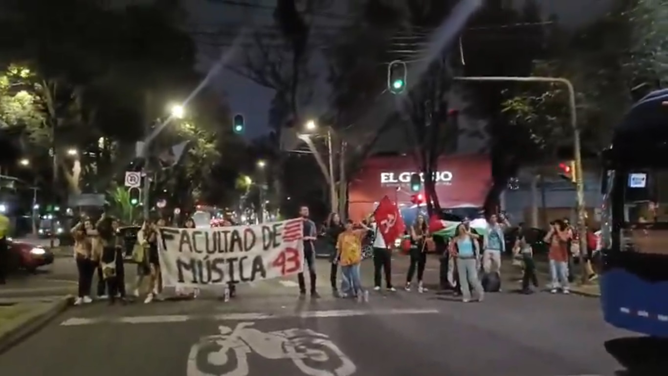 Así también, presuntos estudiantes de Antropología cerraron Reforma en protesta por los mexicanos activistas que presuntamente secuestró Israel y pidieron al gobierno que rompa relaciones con Israel.